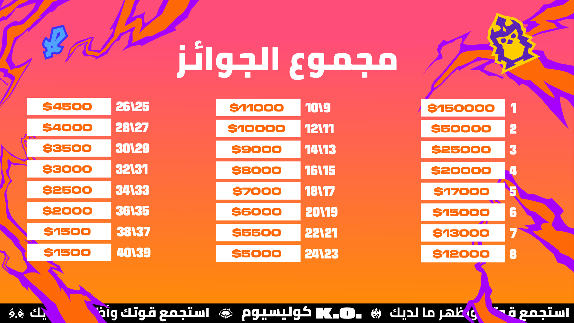 سيتنافس اللاعبون على نصيبهم من إجمالي مجموع الجوائز الذي يبلغ 470 ألف دولار أمريكي. اطلعوا على التفاصيل في الأسفل:
