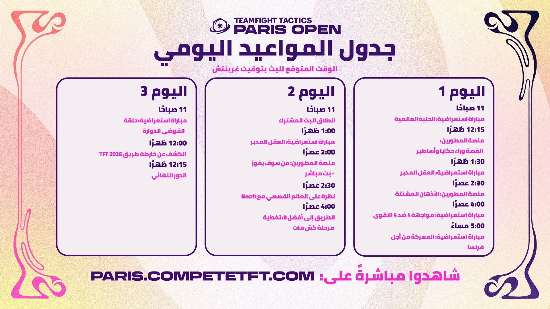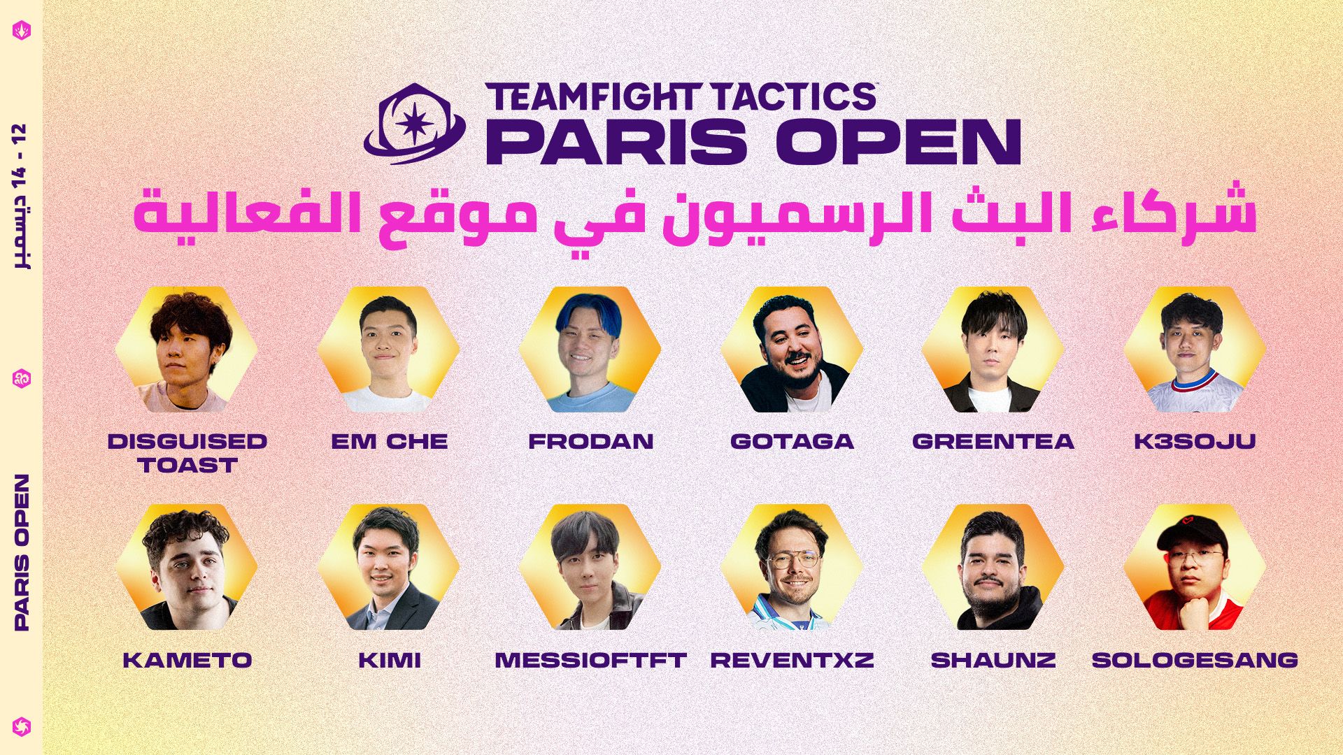 لا تفوتوا البث لمتابعة بطولة TFT Paris Open من 12 إلى 14 ديسمبر! ستتوفر المزيد من التفاصيل عن جدول مواعيد البث أدناه.