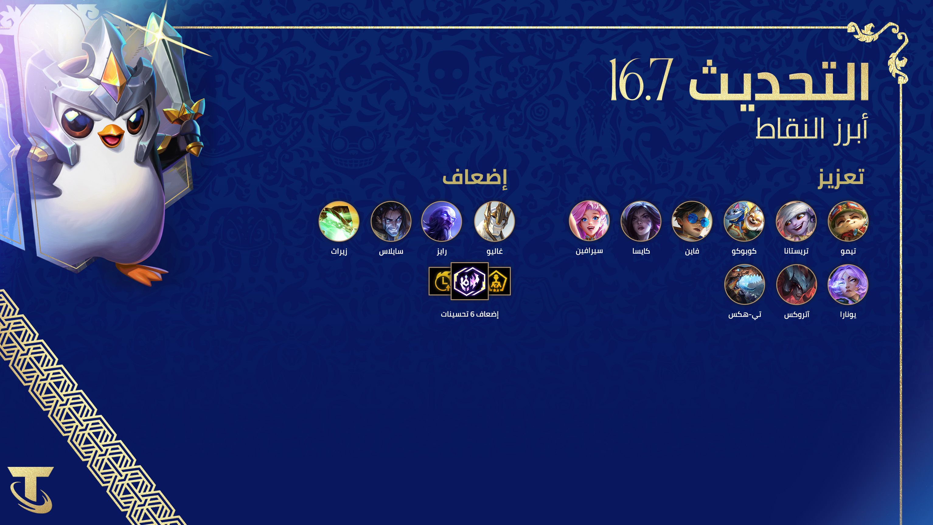 16.7 هو تحديثٌ صغير يستكمل تغييرات التحديث 16.6 استعدادًا لبطولة Tactician’s Crown!