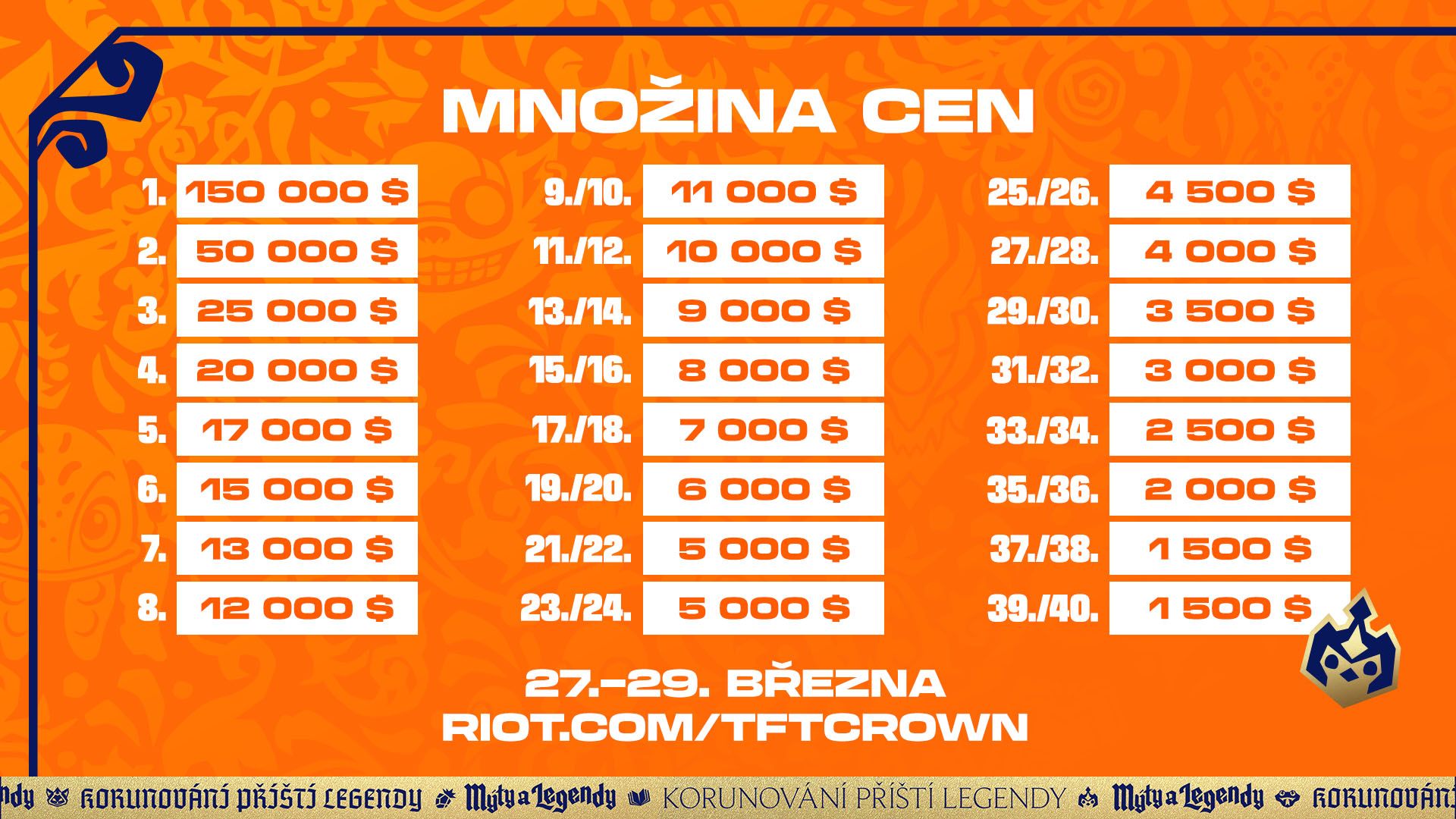 Tactician’s Crown v Mýtech a legendách se bude konat 27. až 29. března a zahrne 40 nejlepších hráčů ze čtyř soutěžních regionů: AMER, EMEA, APAC, CN. Hráči z APAC a CN budou soutěžit na místě konání v Kantonu.