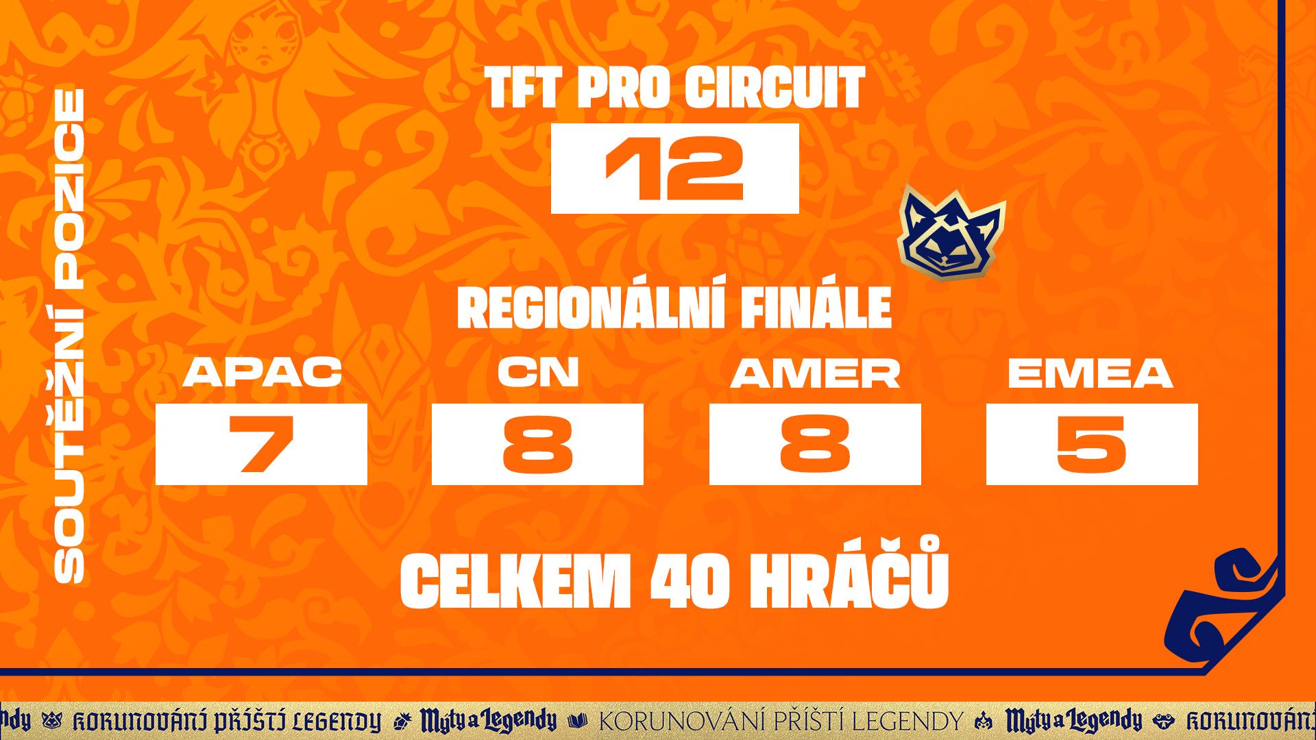 *Po TFT Pro Circuit Mýtů a legend se finální rozdělení pozic pro každý region aktualizuje, přičemž AMER bude mít navíc tři pozice z regionálních finále: