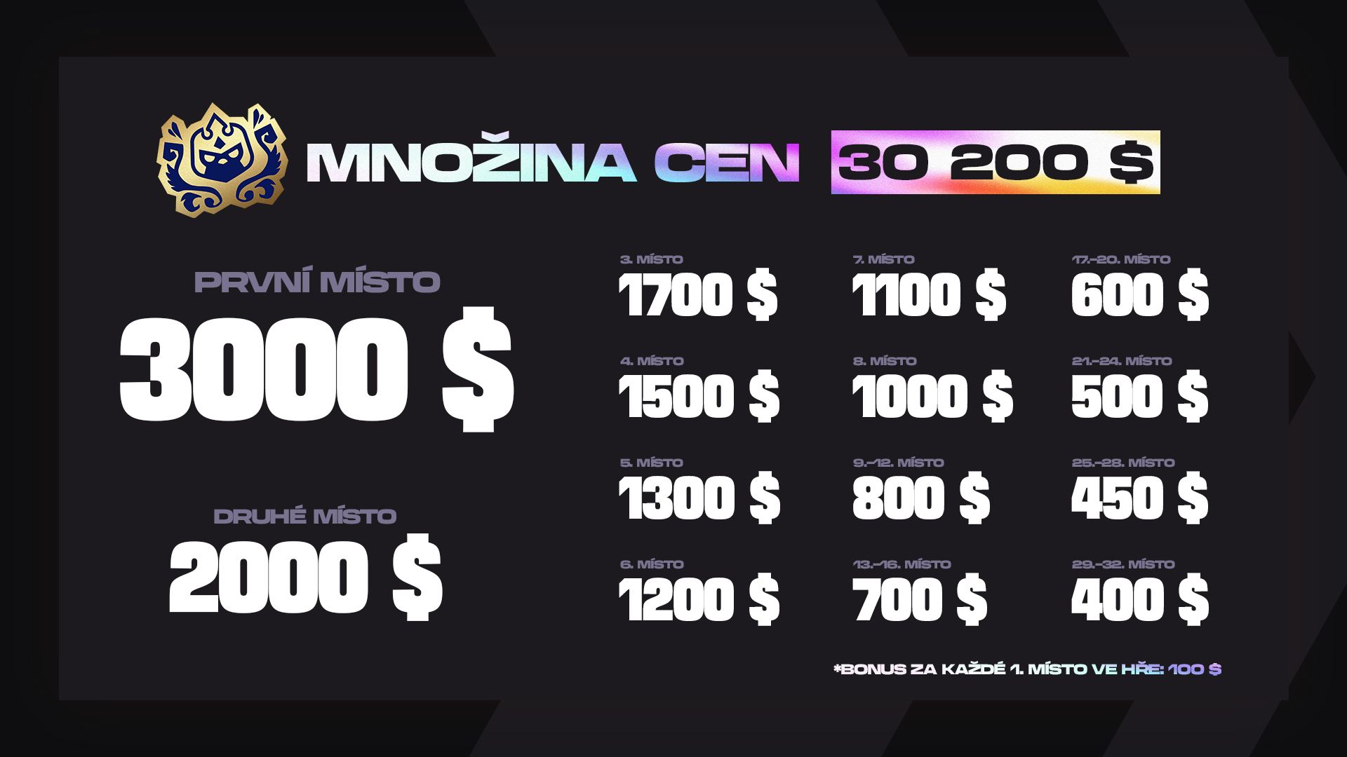 Stejně jako v předchozí sadě budou elitní hráči v každém z regionů bojovat o množinu cen v celkové hodnotě 30 tisíc USD. Rozpis najdete níže: