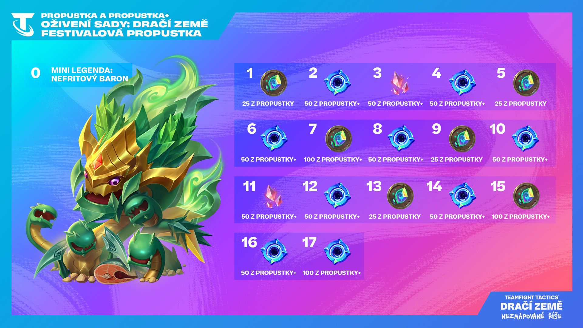 Propustka+ k Oživení sady bude obsahovat 500 pokladových žetonů, 200 krystalů říší, 100 úlomků hvězd a exkluzivní mini legendu Nefritový baron. Pořiďte si ji ještě dnes za 975 RP!