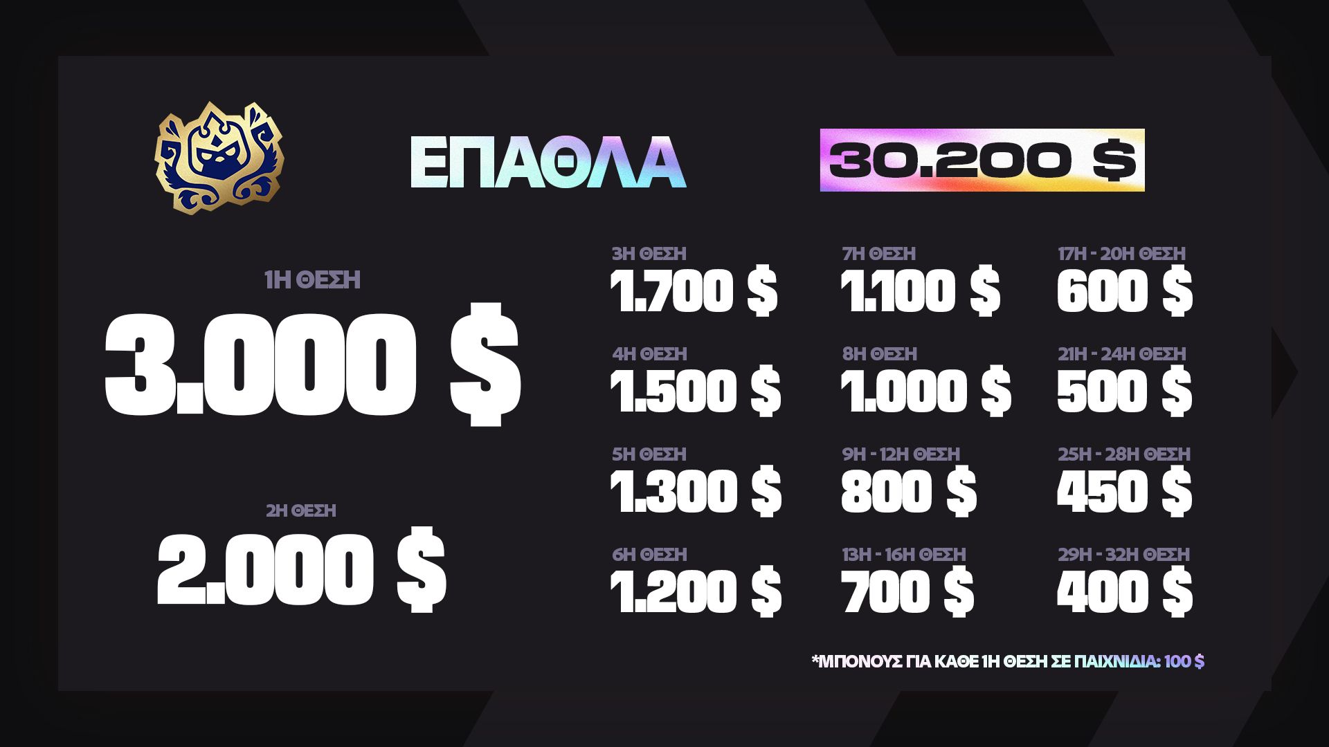 Πλέον θα λαμβάνουν επιπλέον χρηματικό έπαθλο οι 4 παίκτες με τους περισσότερους Πόντους Pro, αντί αυτό να δίνεται μόνο στον παίκτη της 1ης θέσης.