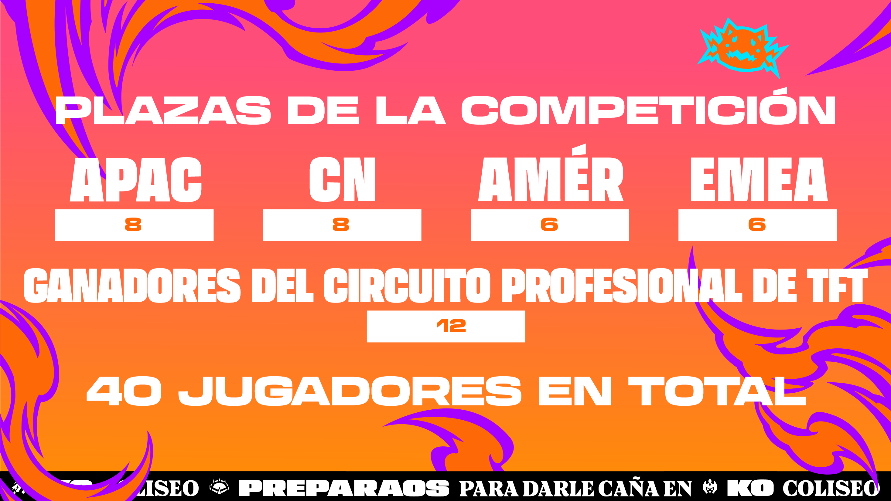La Tactician's Crown de Coliseo KO tendrá lugar del 14 al 16 de noviembre y reunirá a los mejores 40 jugadores de cuatro regiones. Por primera vez, los jugadores clasificados competirán en este evento de forma presencial. Los jugadores de AMÉR y EMEA se enfrentarán en Alicante (España), mientras que los jugadores de APAC y CN se verán las caras en un evento celebrado en la región de CN.
