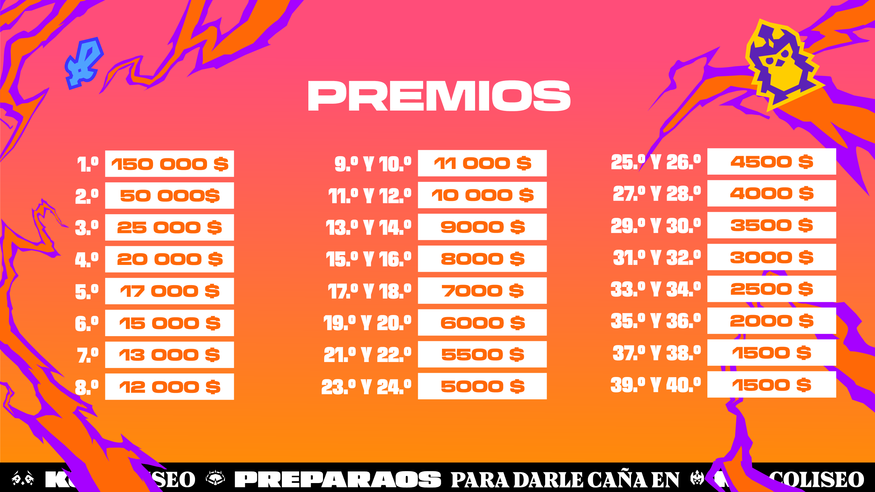 Los jugadores competirán por hacerse con parte del premio, de 470 000 dólares en total. Echad un vistazo al desglose del premio a continuación: