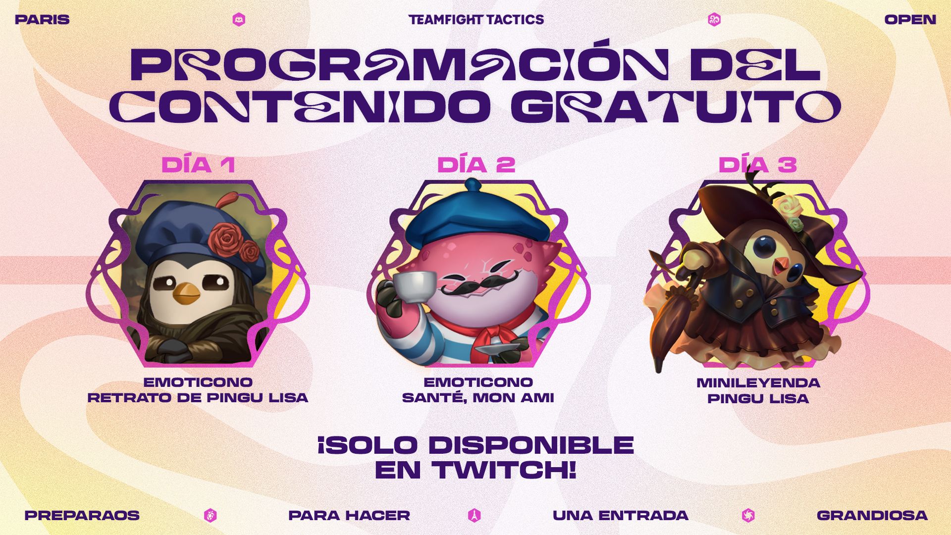 Pero el Paris Open no es solo un torneo, sino también un homenaje a la comunidad de TFT. Además del evento principal, jugadores y amantes del juego podrán disfrutar de: