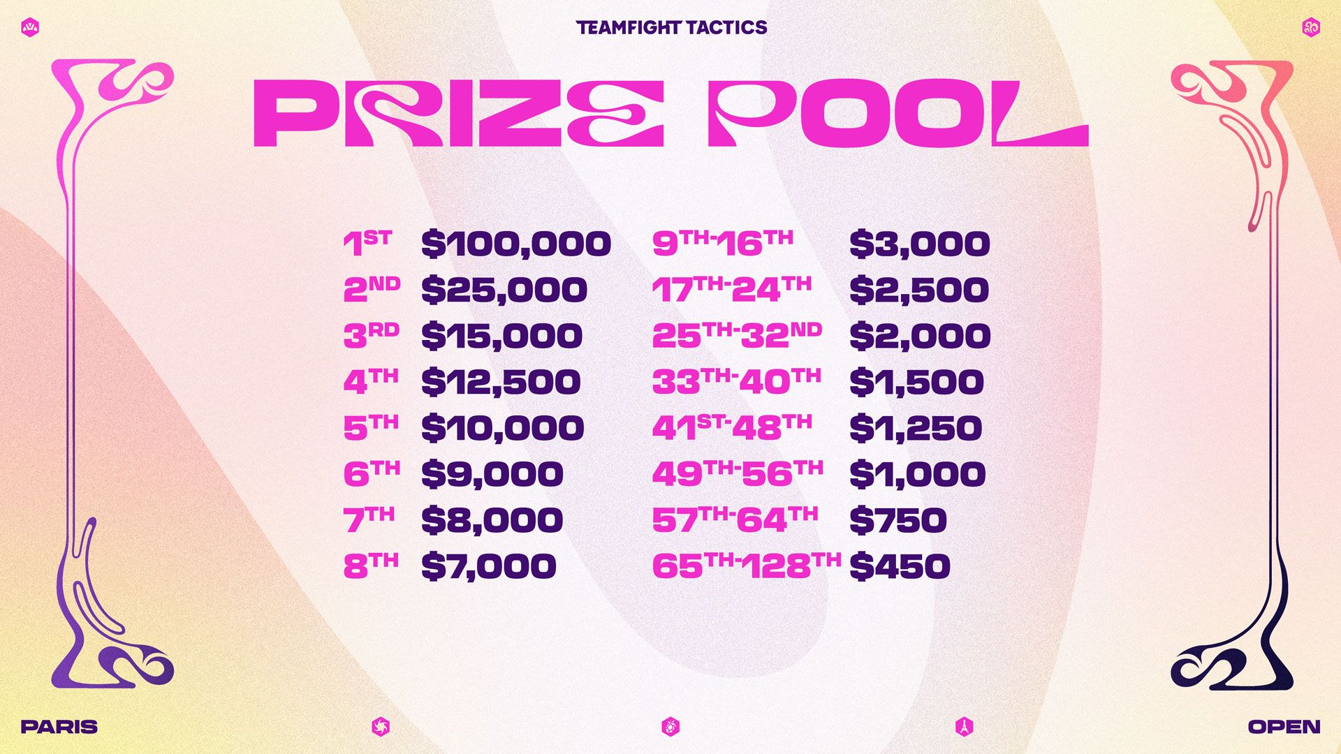 En el TFT Paris Open, vamos a lo grande, con 768 plazas para competidores en el evento principal. Los jugadores competirán con el set Legado y leyenda, ¡que saldrá poco después de que empiece el evento! La clasificación, el sistema de puntos y el formato se encuentran más abajo.
