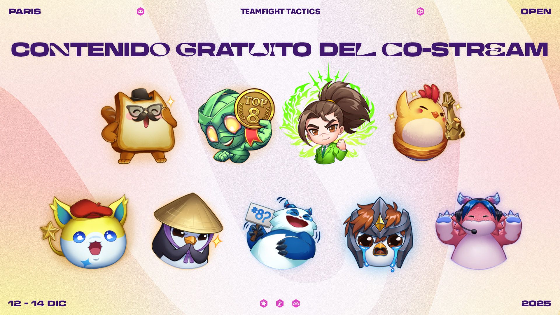 ¡Conectaos del 12 al 14 de diciembre para no perderos el TFT Paris Open! Encontraréis más información sobre la retransmisión principal a continuación.
