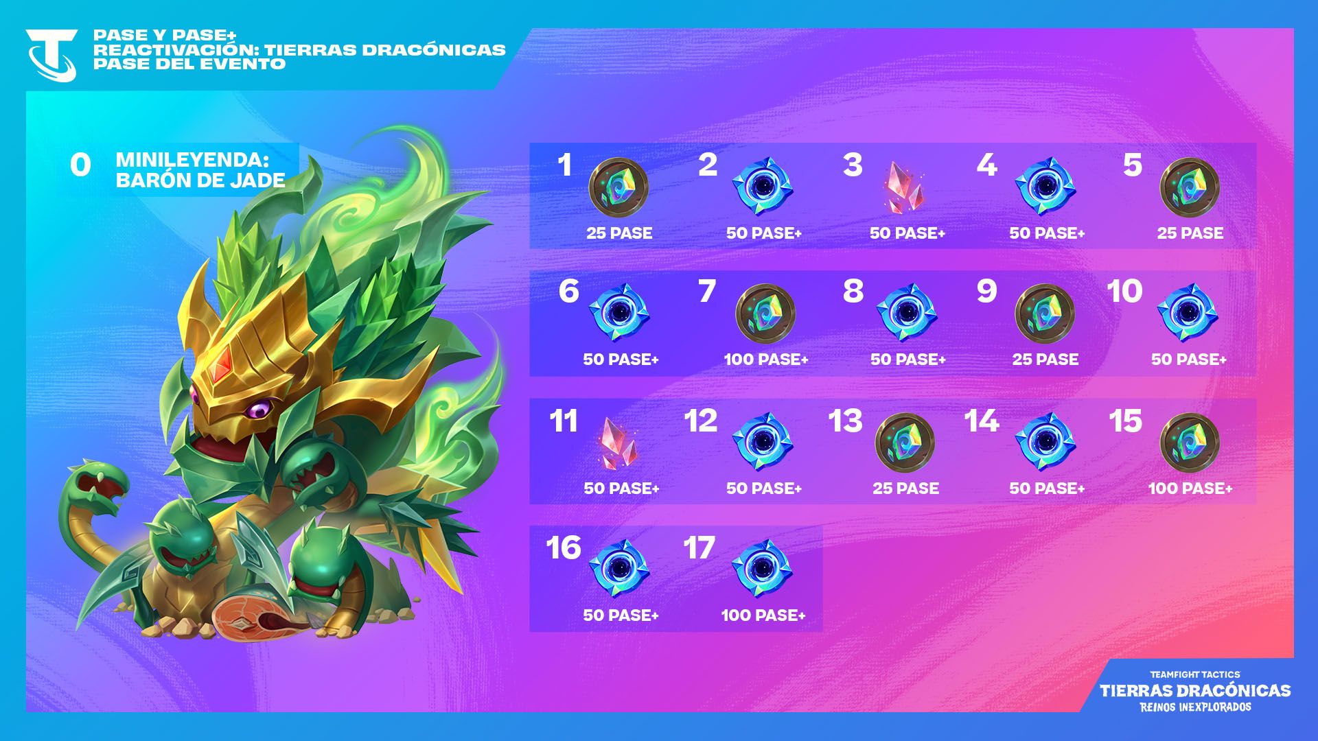 El Pase+ de Reactivación de Set contará con 500 Piezas del Tesoro, 200 Cristales de Reino, 100 Fragmentos de Estrella y la Minileyenda exclusiva Barón de Jade. ¡Llévense el suyo hoy por 975 RP!