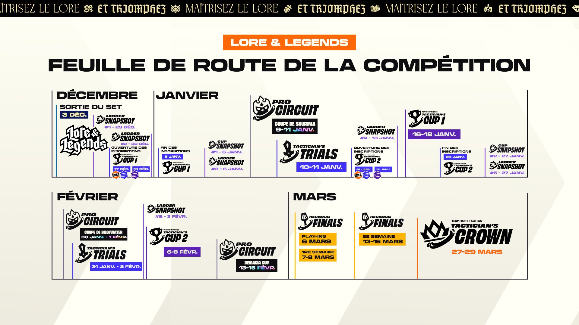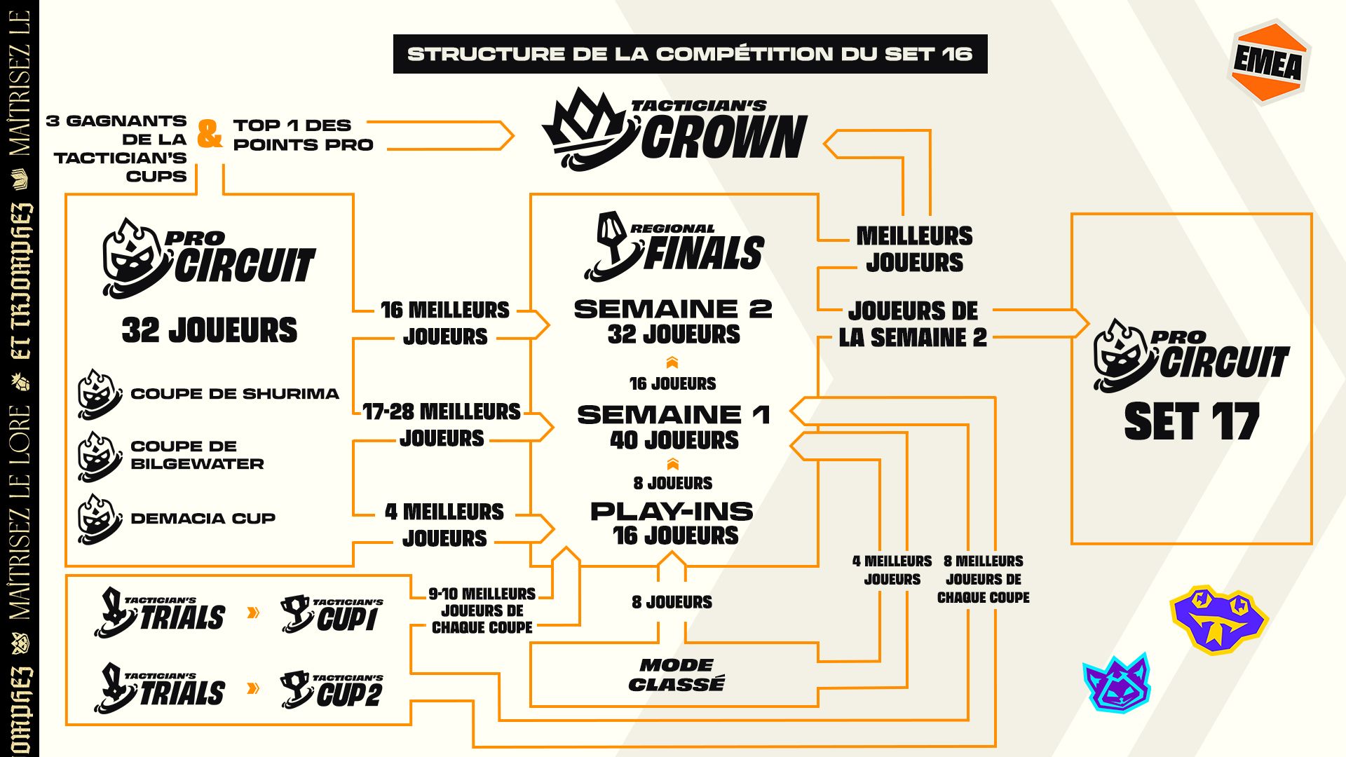 - Tactician's Trials : les 64 meilleurs joueurs des Tactician's Trials des régions AMER & EMEA se qualifieront pour la Tactician's Cup de leur région.