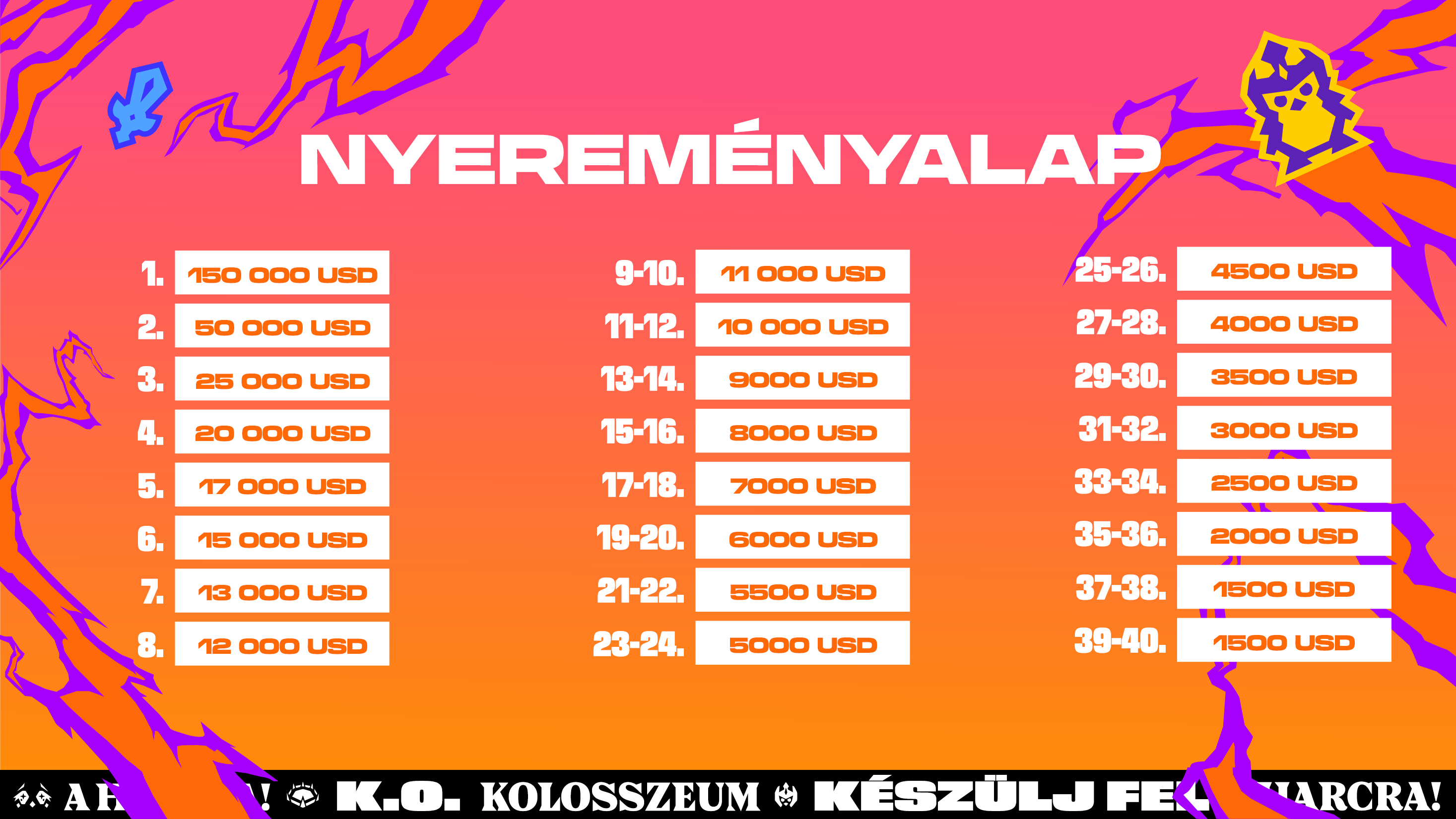 Három napnyi megmérettetés után egy játékos a Taktikus koronájával, 150 000 USD összegű díjjal és a K.O. Kolosszeum bajnoka címmel térhet haza.
