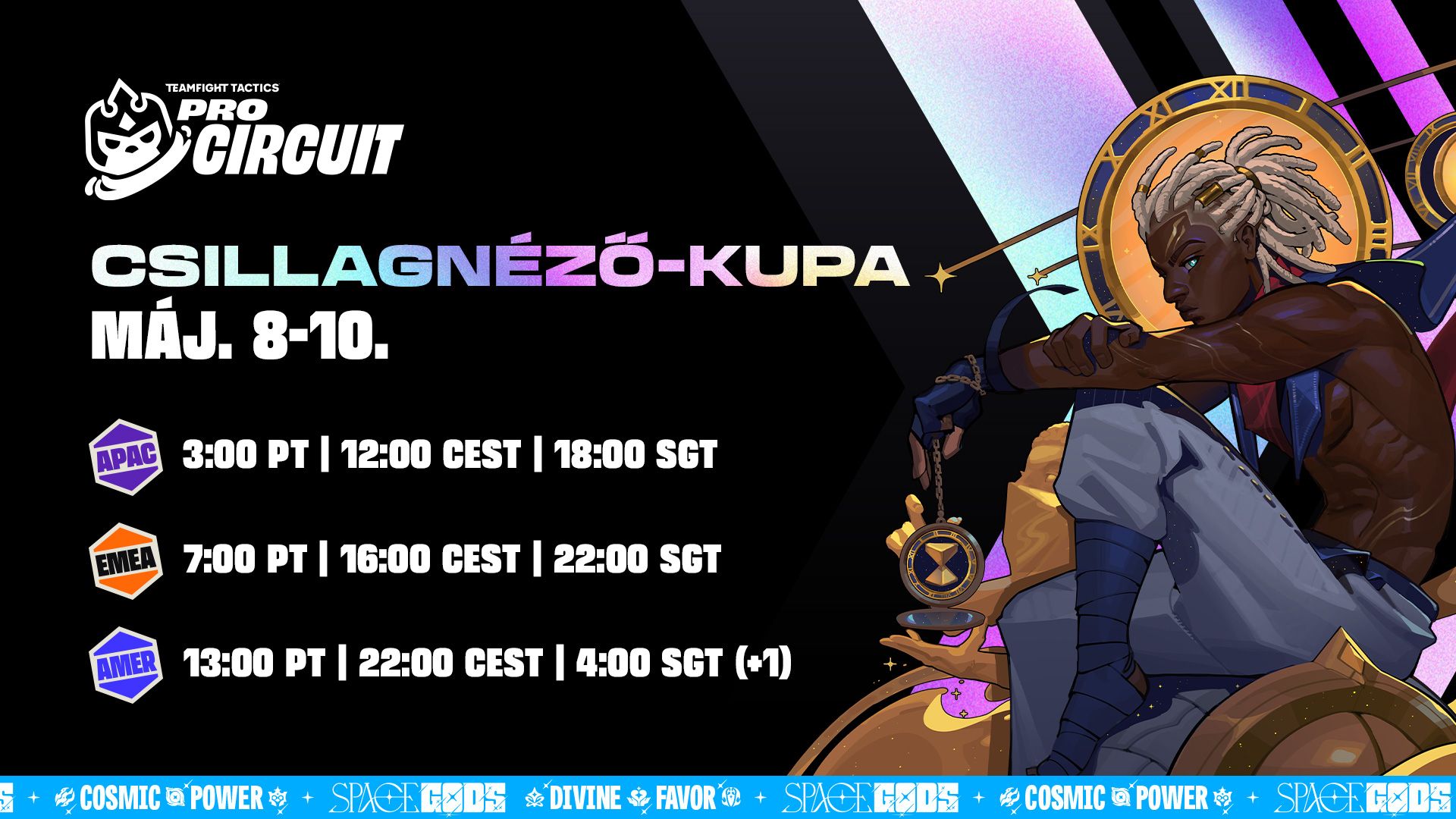 A TFT Pro Circuit a versenyjáték-ökoszisztéma 1. osztálya, ahol az egyes régiók legjobb 32 játékosa verseng Pro Pontokért, 30 000 dolláros nyereményalap őket megillető részéért és a regionális döntőben való szereplésért. Íme az Űristenek 3 TCP-kupájának időpontja: