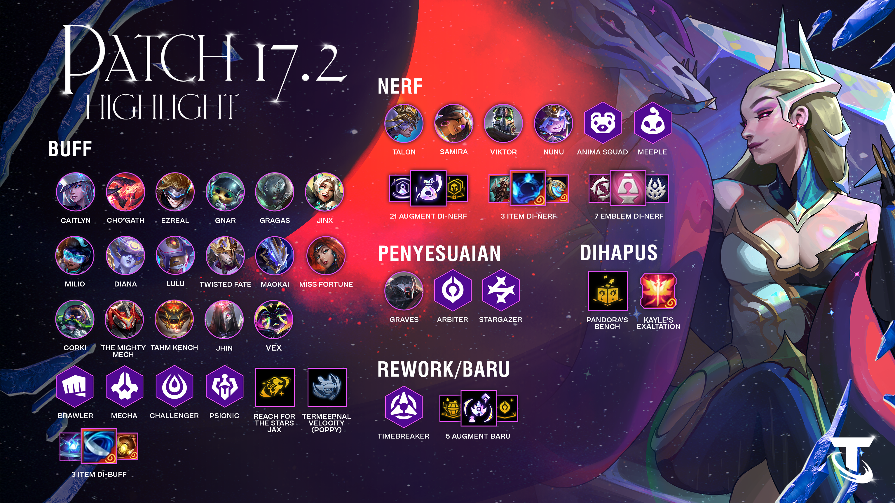 Patch 17.2 benar-benar penuh konten. Mulai dari kembalinya Opening Encounter, hadirnya God Blessing dan Augment baru, hingga kumpulan perubahan balance seperti biasa. Isinya sangat banyak, jadi daripada berlama-lama dengan kalimat pembuka bertele-tele, langsung saja kita masuk!