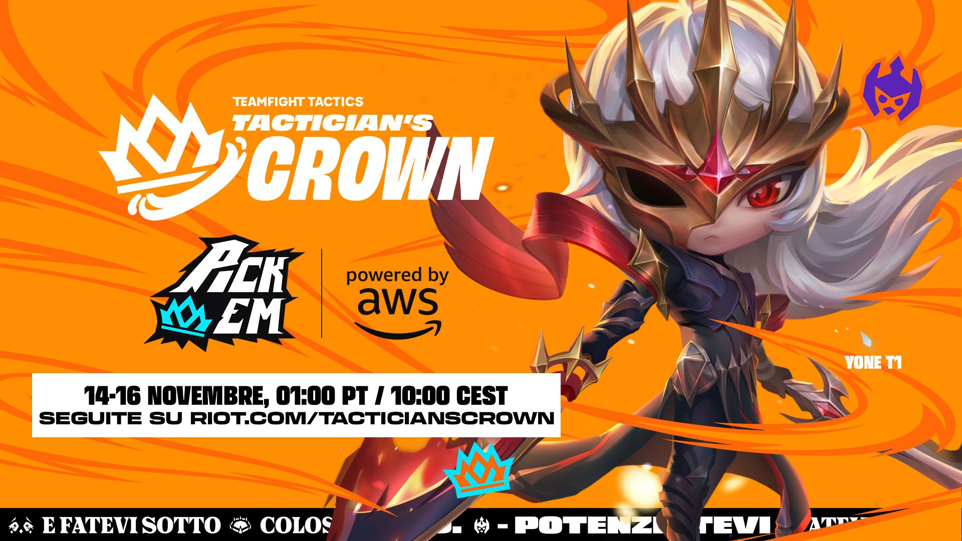 Entrate di persona sul ring e sfidatevi per vincere premi incredibili con il Pick'em del #TFTCrown offerto da @awscloud!!