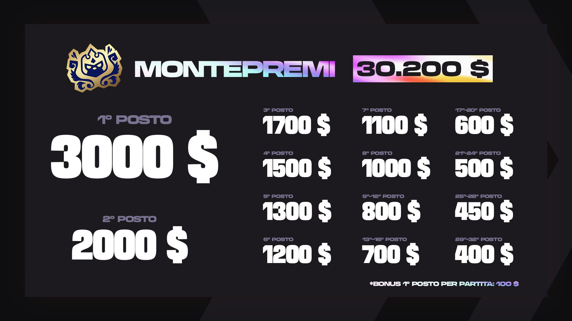 Inoltre, i migliori 4 procacciatori di punti Pro ricevono un premio in denaro aggiuntivo, invece di ottenere solo il primo posto