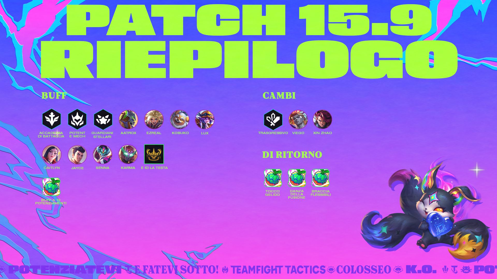 Saluteremo il Colosseo K.O. con una patch contenente il Tesoro di Choncc e un'ampia gamma di buff per K.O. e Reami inesplorati! Ma siamo solo all'inizio: si dice in giro che, nella prossima patch, arriverà un nuovo set, quindi scrollate verso il basso e scoprite la storia.