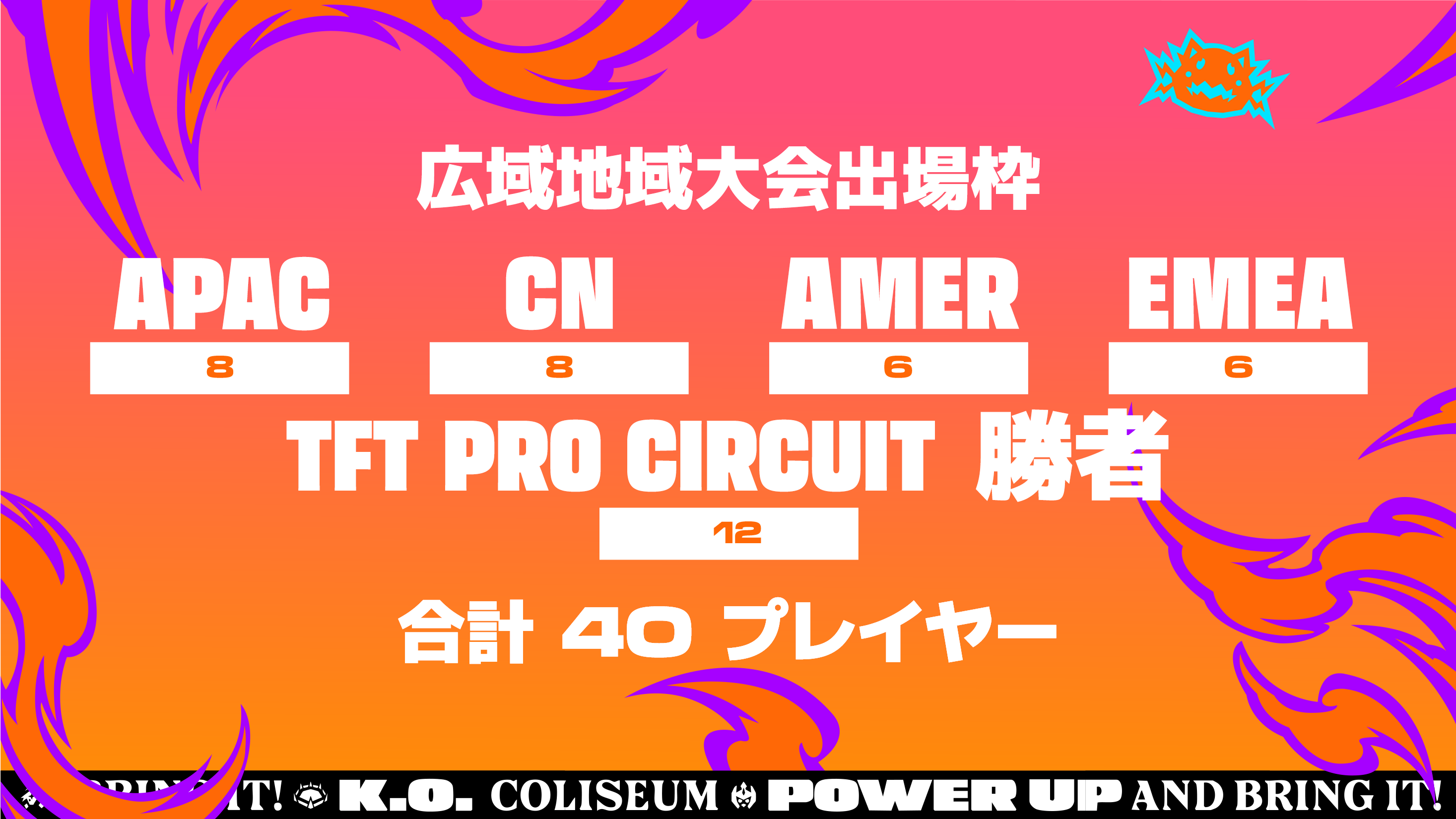 Tactician’s Crownに出場するプレイヤーの内訳は、以下のとおりです。- TFT Pro Circuitから12名