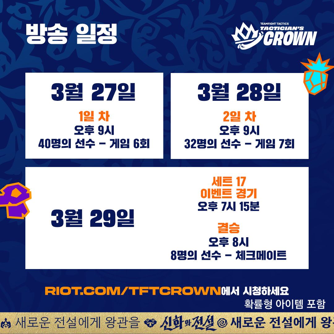 3월 27일부터 29일까지, 세계 최고의 선수 40명이 룬테라의 역사 속 자리를 두고 경쟁하는 전략가의 왕관에서 신화와 전설의 이야기를 따라가 보세요. 영웅적인 한 주가 지나면, 선수들은 누가 전략적 팀 전투의 왕관을 수여 받아 세계 최고 선수로 등극할 자격이 있는지 증명할 것입니다.