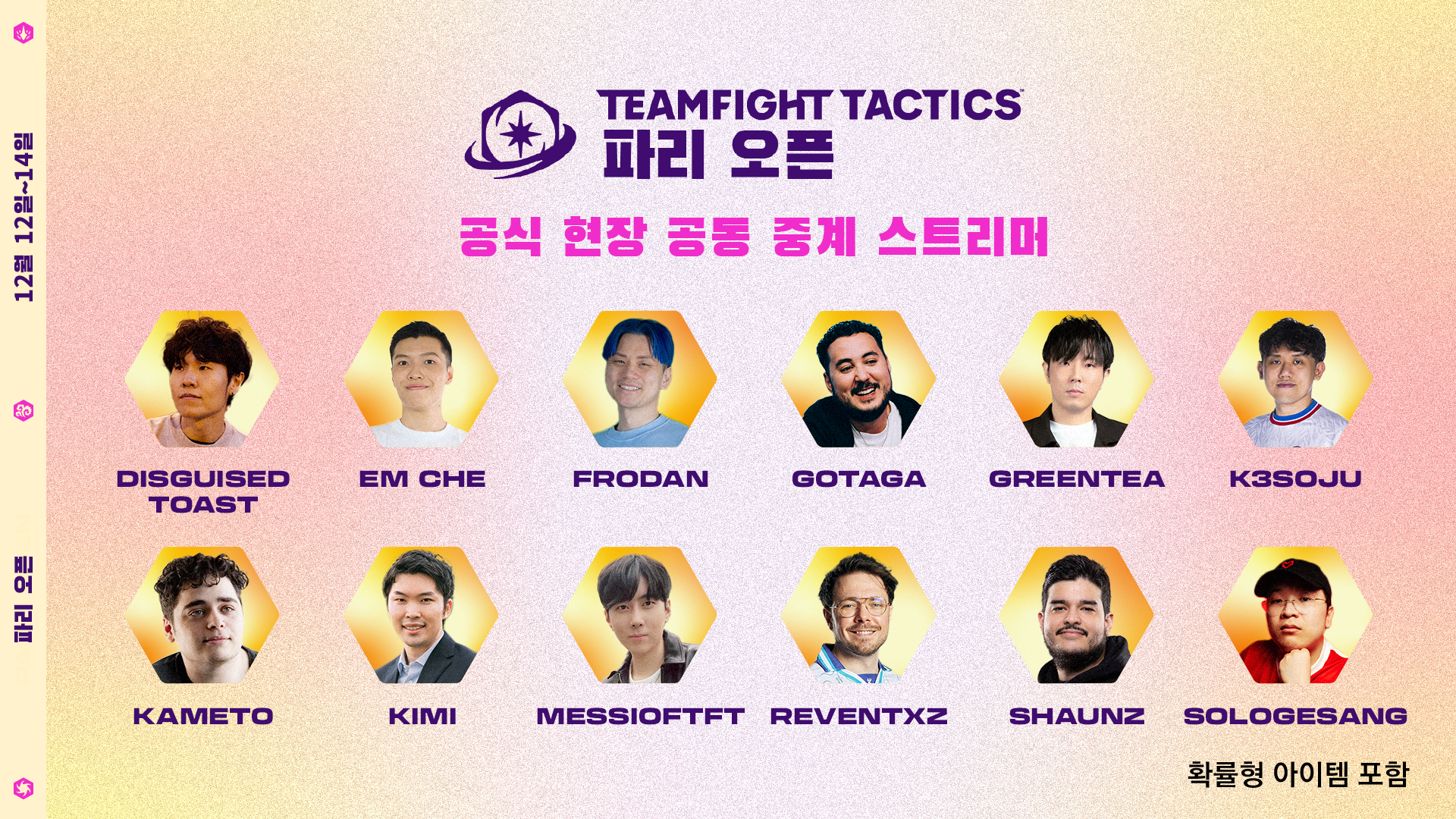 12월 12일부터 14일까지 전략적 팀 전투 파리 오픈을 시청해 보세요! 방송 일정에
