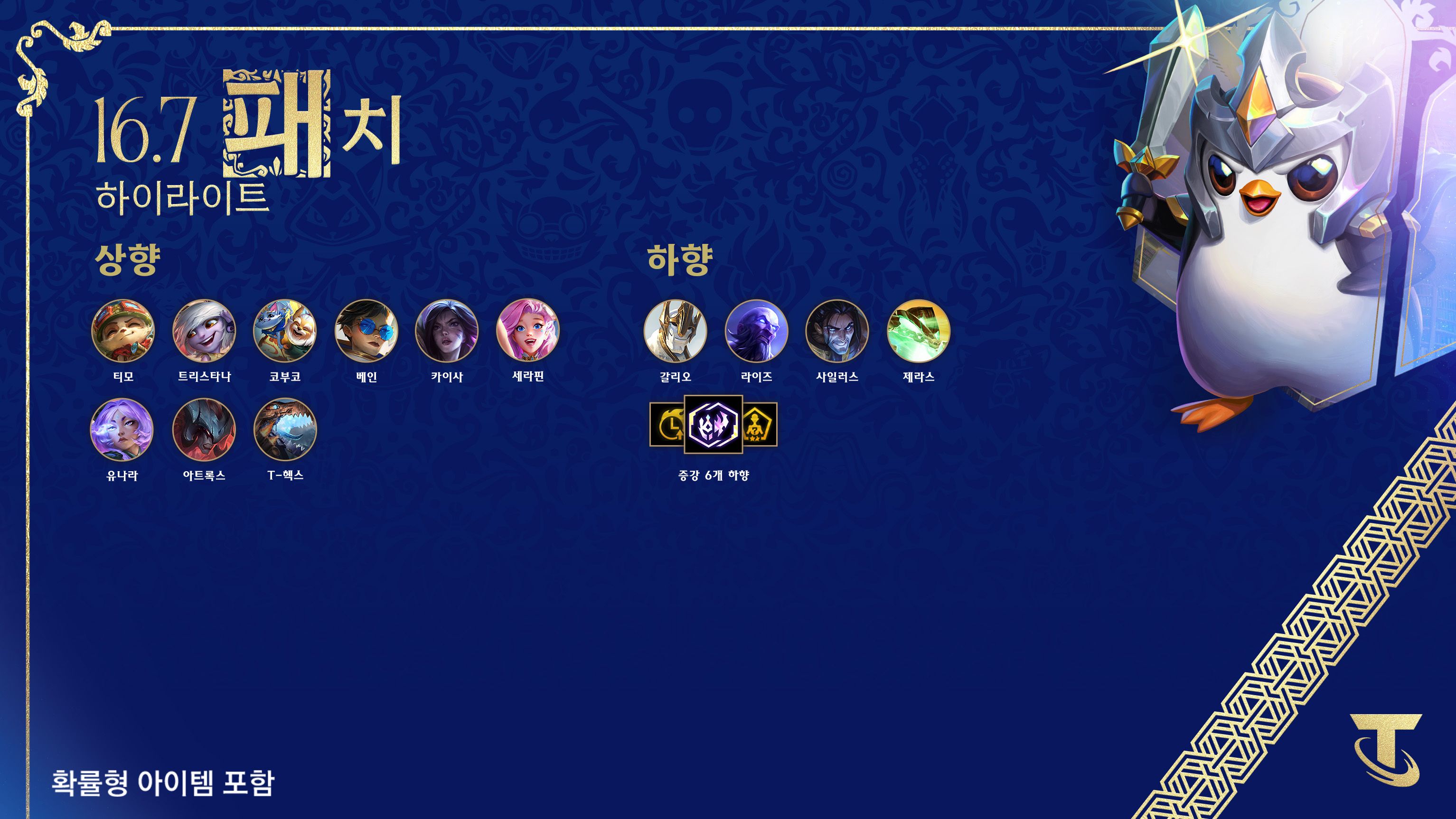 전략가의 왕관에 앞서 출시되는 16.7 패치에서는 지난 16.6 패치를 보완하기 위한 소규모 변경 사항을 준비했습니다!