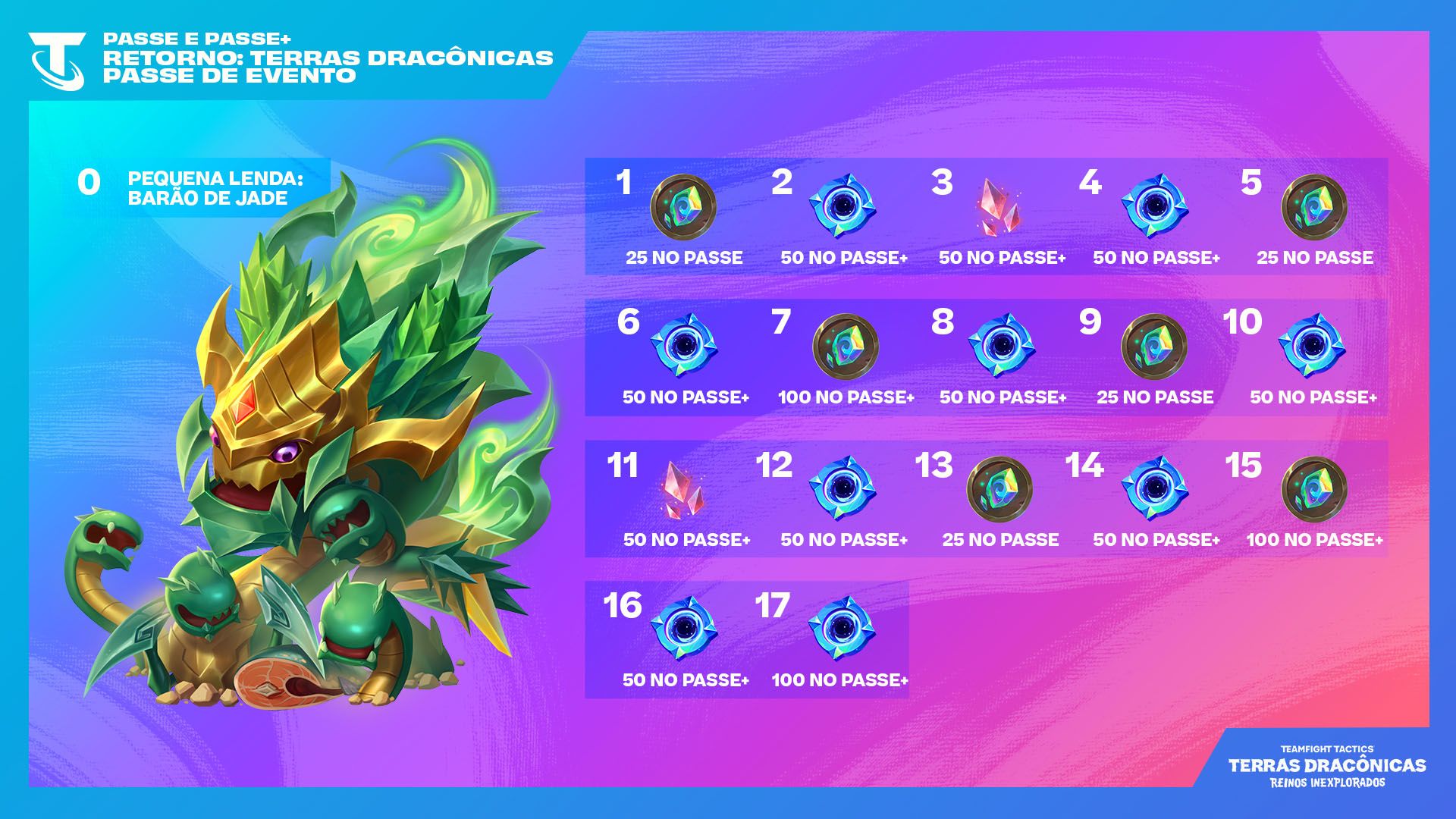 O Passe+ de Retorno do Conjunto contará com 500 Emblemas do Tesouro, 200 Cristais do Reino, 100 Fragmentos Estelares e a Pequena Lenda exclusiva Barão de Jade. Garanta o seu por 975 RP hoje mesmo!