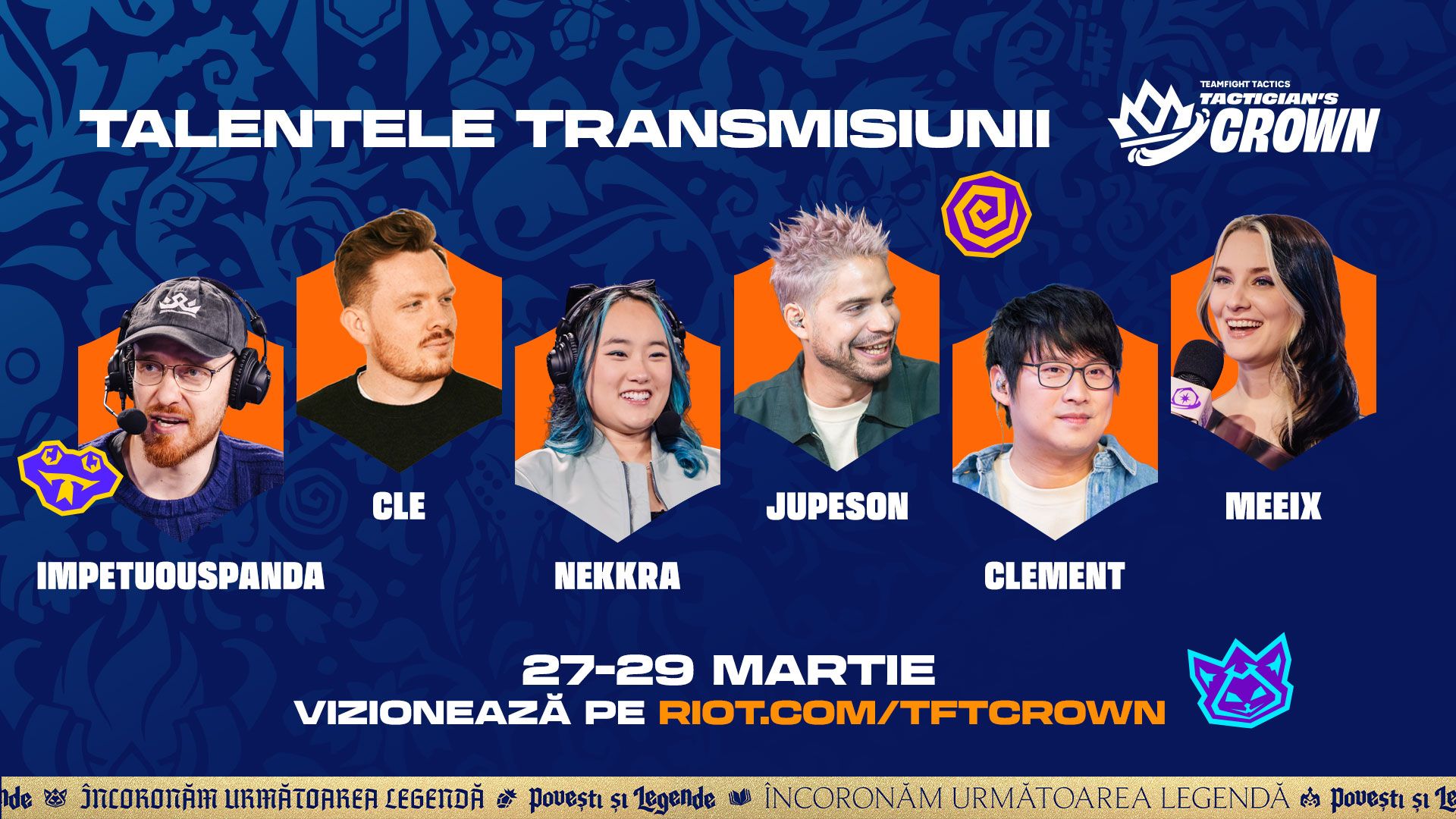 Fiecare poveste epică are nevoie de naratori. Faceți cunoștință cu echipa în direct de la Tactician's Crown Povești și legende, gata să vă aducă toată acțiunea, momentele-cheie și fazele legendare, pe măsură cei primii 40 de tacticieni scriu istoria în Runeterra!
