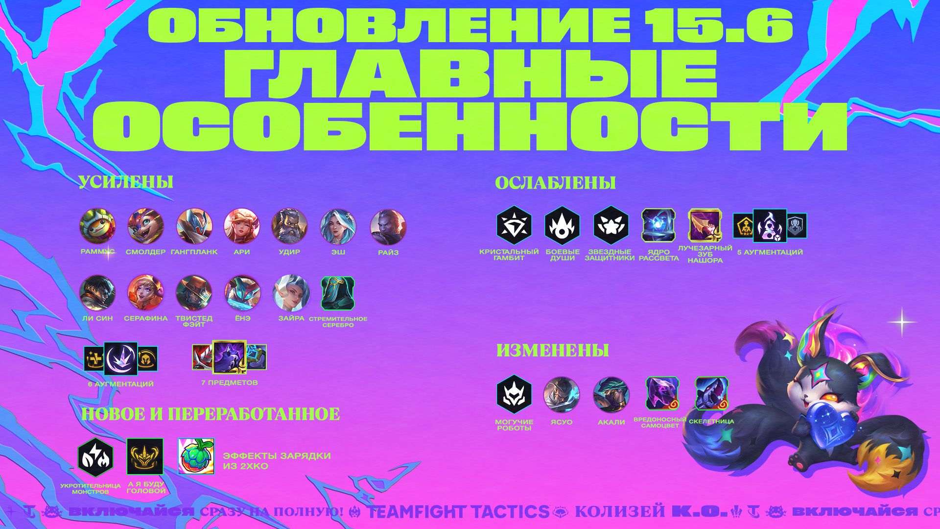 В обновлении 15.6 мы ослабляем особенности и раздаем усиления бойцам 5-го ранга и некоторым кэрри, которые тащили не так успешно, как хотелось бы, – но это все правки баланса. Мы также приготовили для вас новые эффекты зарядки в тематике 2XKO, чтобы отпраздновать открытие раннего доступа к этой игре! Неважно, идете ли вы ва-банк в "Двойном ударе" или взбираетесь на вершину "Пути Ао Шиня", – вперед в бой! Не забудьте дойти до вершины с 12 проводниками до конца обновления, чтобы получить бесплатный портал!