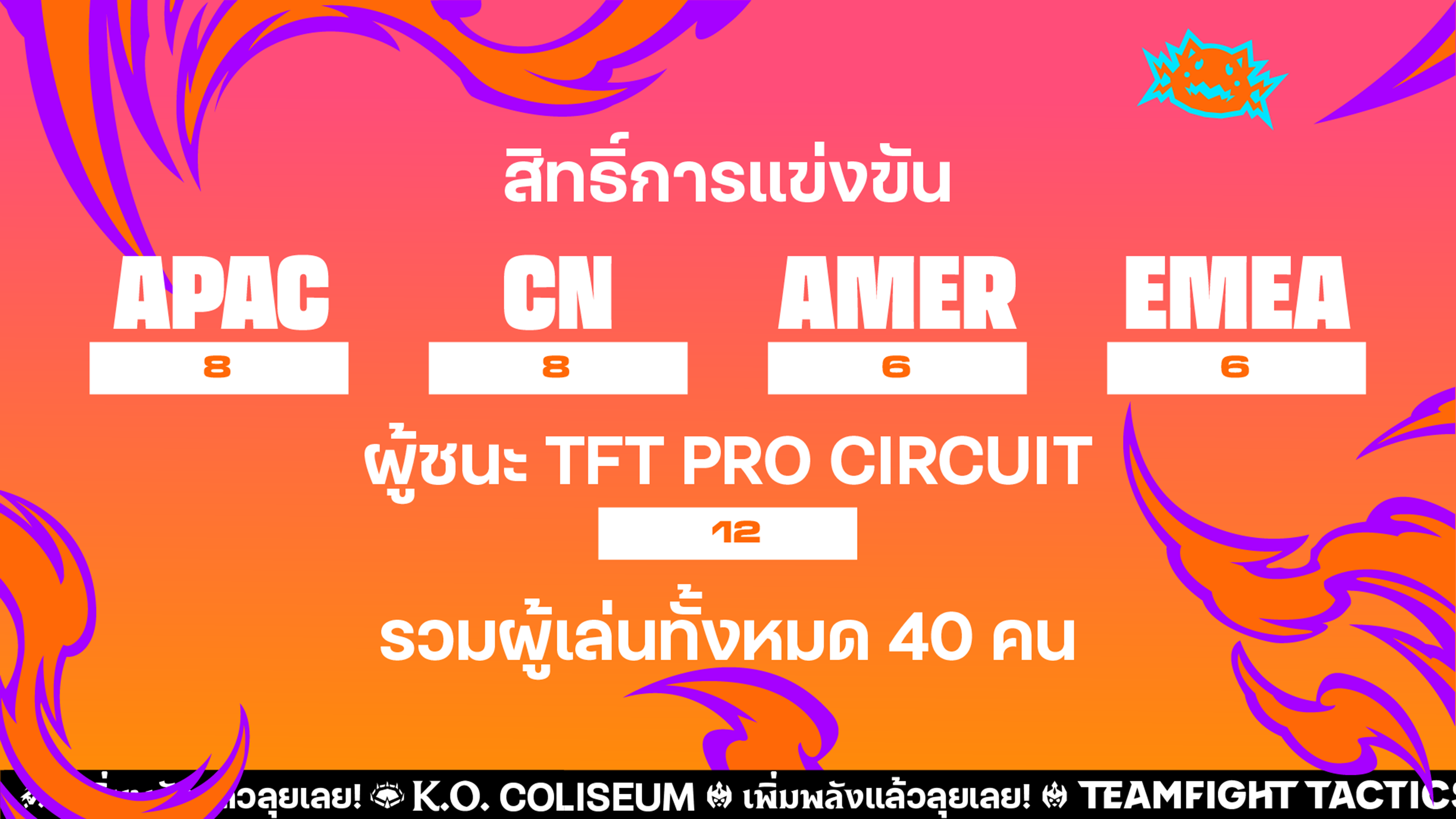 - เราจะจัดสรรสิทธิ์ให้กับผู้เล่นจาก TFT Pro Circuit จำนวน 12 สิทธิ์