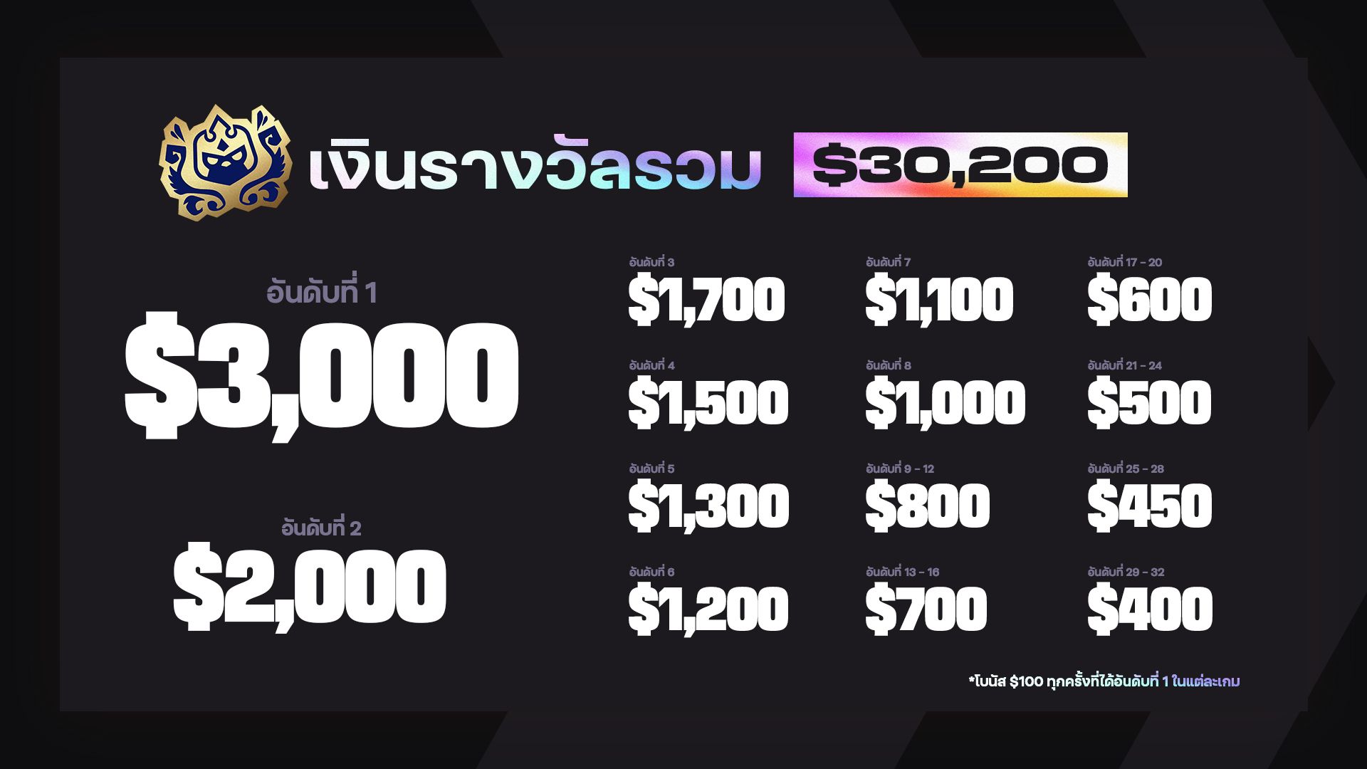 ขณะนี้ Pro Point จะให้เงินรางวัลเพิ่มเติมกับผู้เล่นท็อป 4 ทุกคน แทนก่อนหน้านี้ที่ให้เฉพาะอันดับที่ 1 เท่านั้น
