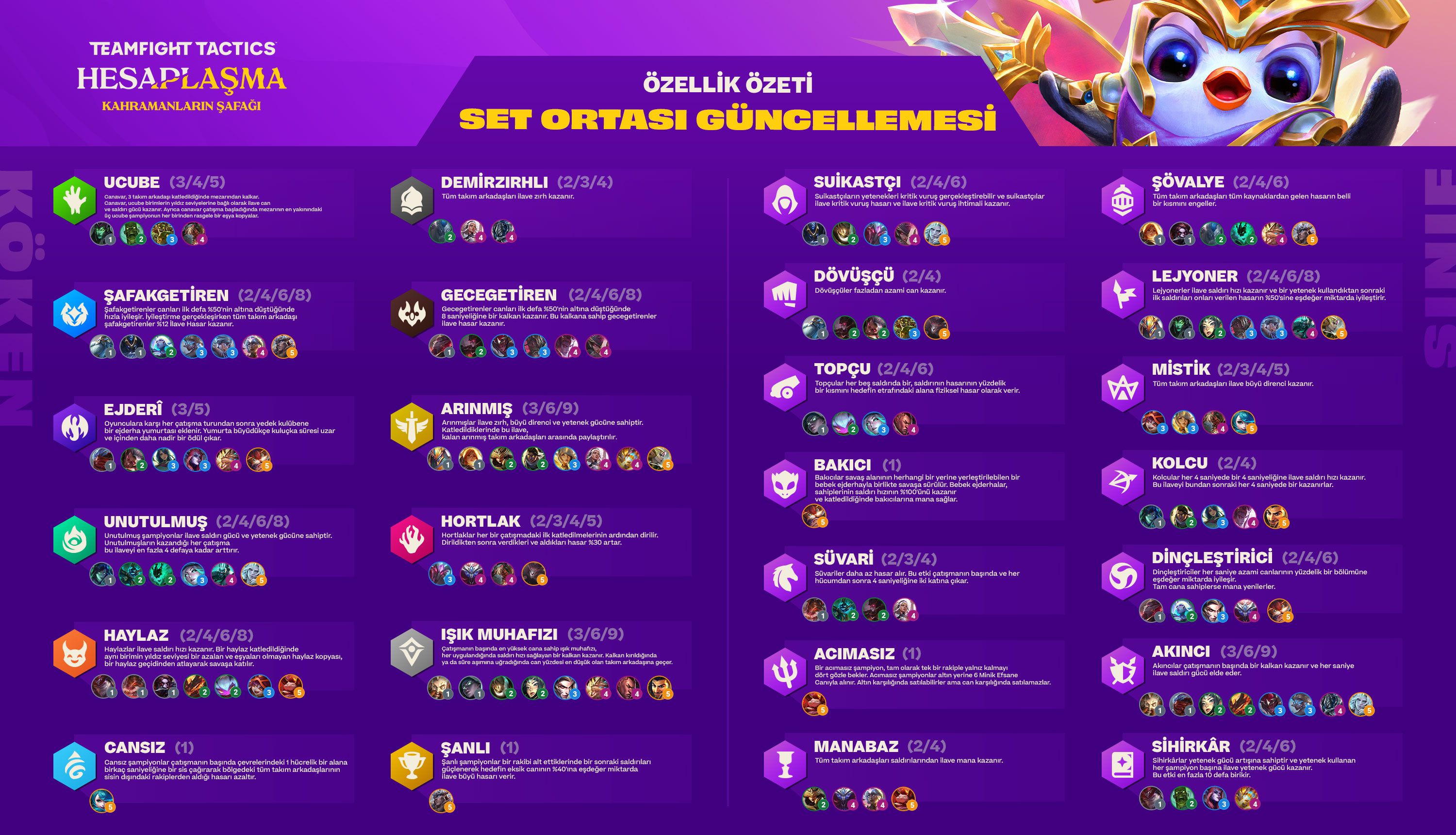 Bu yamada oyuncu hasarı sistemini değiştiriyor, dükkân ihtimallerini düzenliyor, 4 Altınlık şampiyonları güçlendiriyor ve ne yazık ki Yone'yi zayıflatıyoruz. Tam da Chibi Yone Yakındiyar'a adımını atarken... 14.8 Yaması'nda 4 Altınlık taşıyıcıların 3 Altınlık yenileme odaklı kompozisyonların gücüne ulaşabilmesini amaçlıyoruz. Bunu yaparken birkaç yaşam kalitesi ve dengeleme değişikliğini de eksik etmiyoruz. Konuşacak çok konu var ancak aceleye mahal yok. Çayınızı alın ve okumaya başlayın.