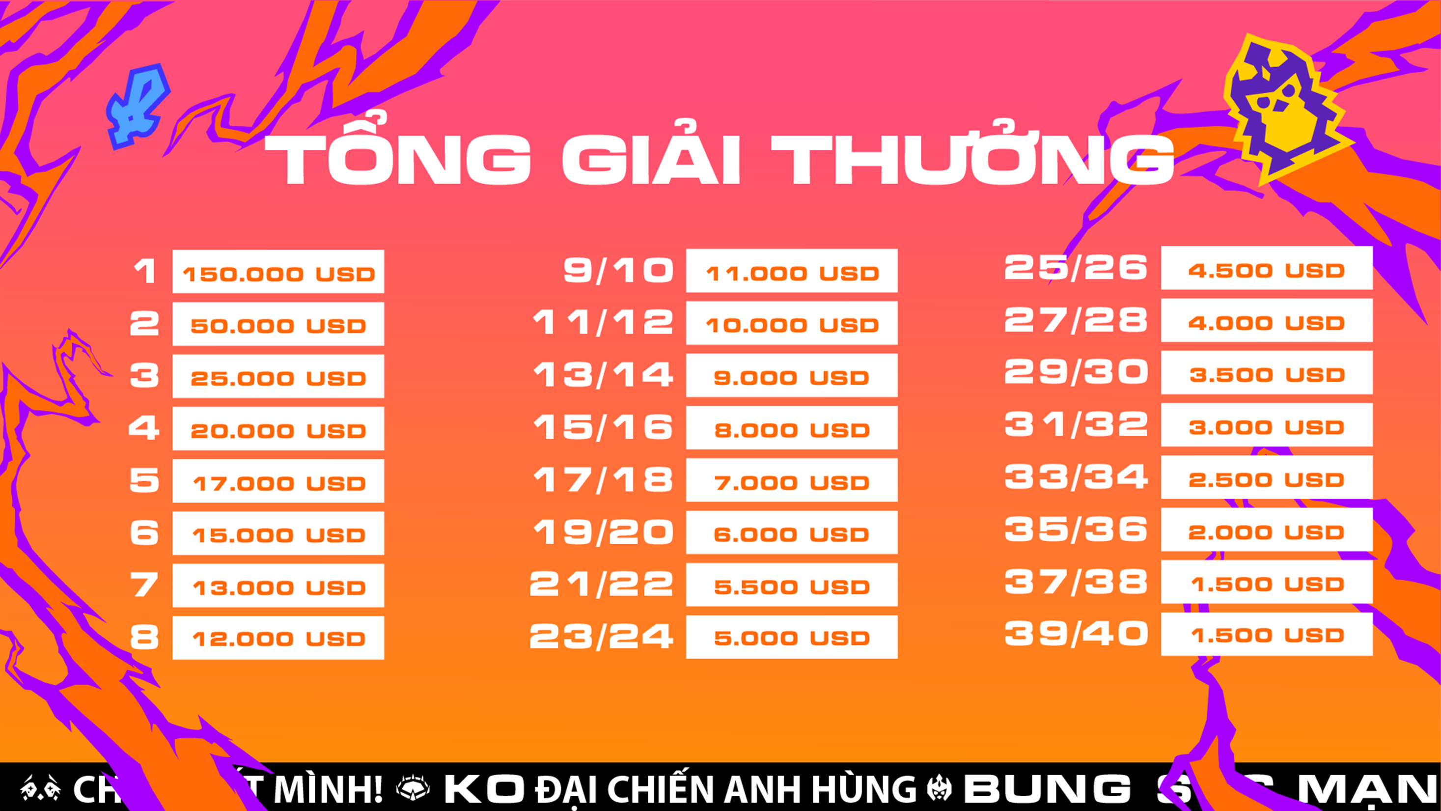 Người chơi sẽ tranh tài để giành phần thưởng từ quỹ giải thưởng trị giá 470.000 USD. Xem chi tiết bên dưới: